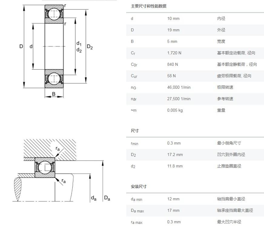 SIAIF不銹鋼深溝球軸承 S61800-2Z 詳細(xì)參數(shù)