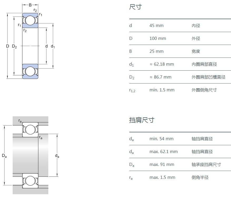 SIAIF不銹鋼深溝球軸承 S6309-2Z 詳細(xì)參數(shù)