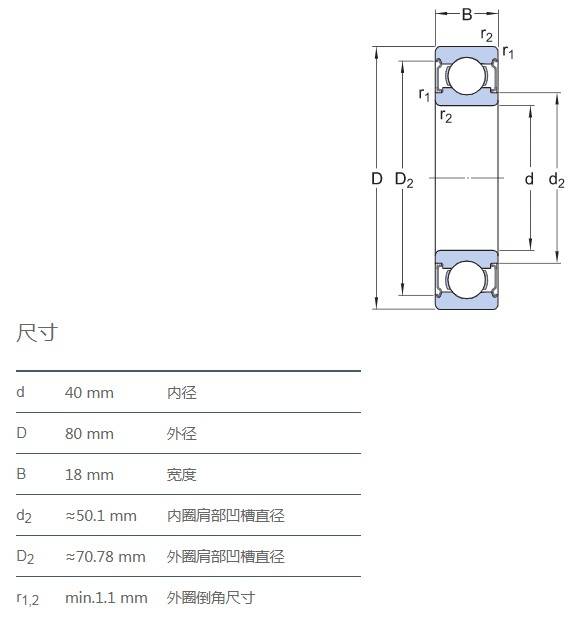 SIAIF不銹鋼深溝球軸承 S6208-2Z 詳細(xì)參數(shù)