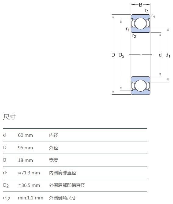 SIAIF不銹鋼深溝球軸承 S6012-2Z 詳細(xì)參數(shù)