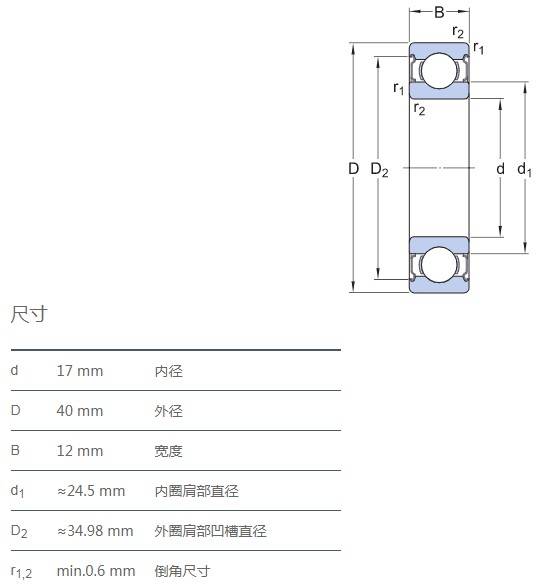 SIAIF耐高溫軸承 6203ZZ/VA201 詳細(xì)參數(shù)