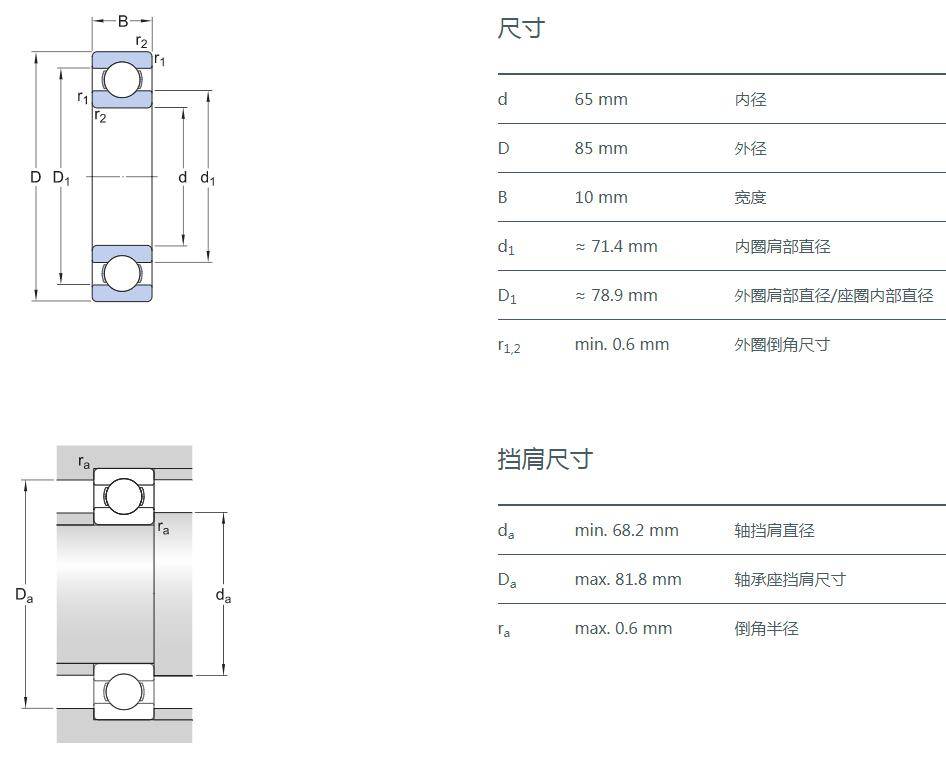 SIAIF不銹鋼深溝球軸承 S6813-2Z 詳細參數(shù)