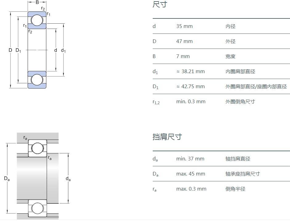 SIAIF不銹鋼深溝球軸承 S61807-2Z 詳細(xì)參數(shù)